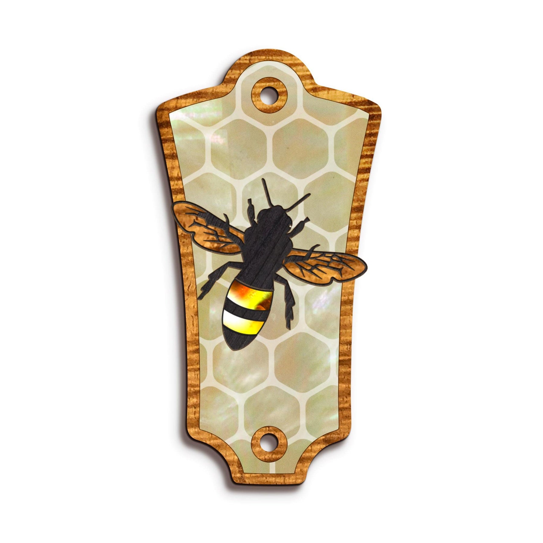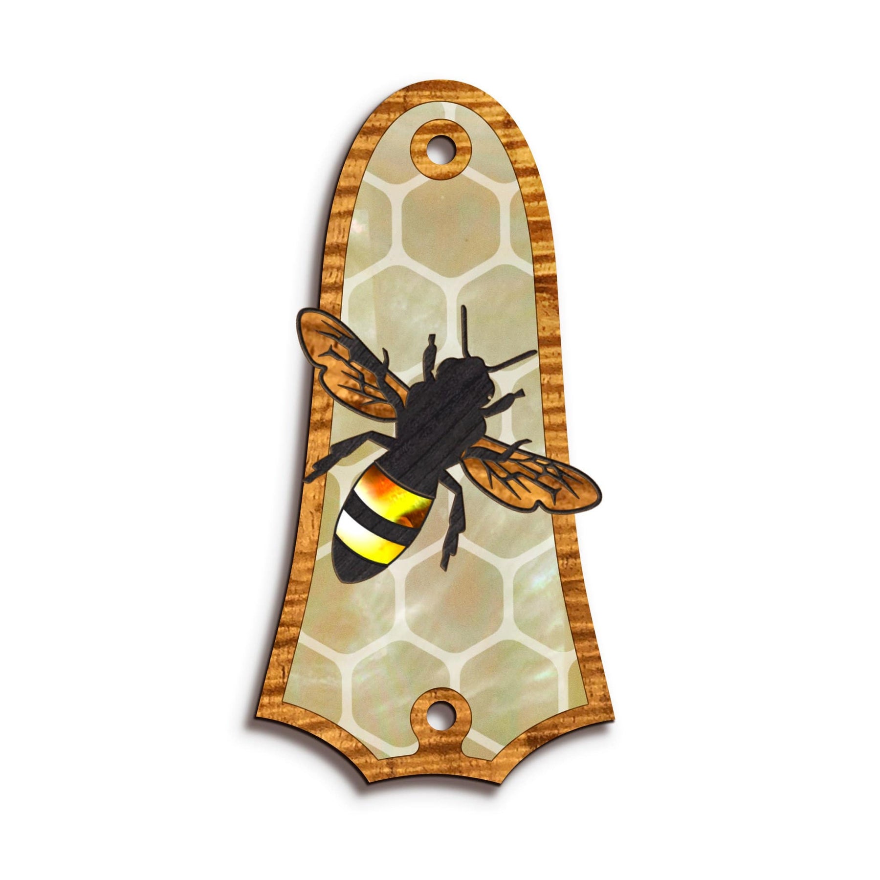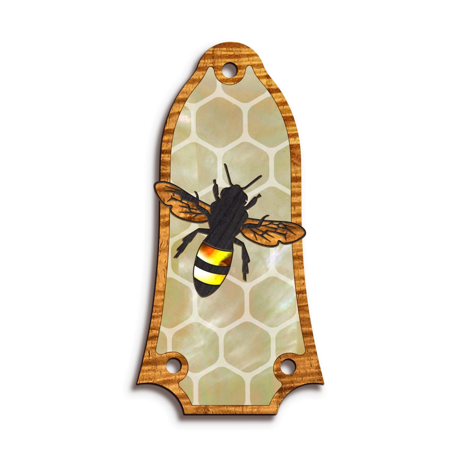 Choose between AAA Curly Koa, or AAA Curly Koa & Pearl for your Save the Bees Custom Truss Rod Cover.