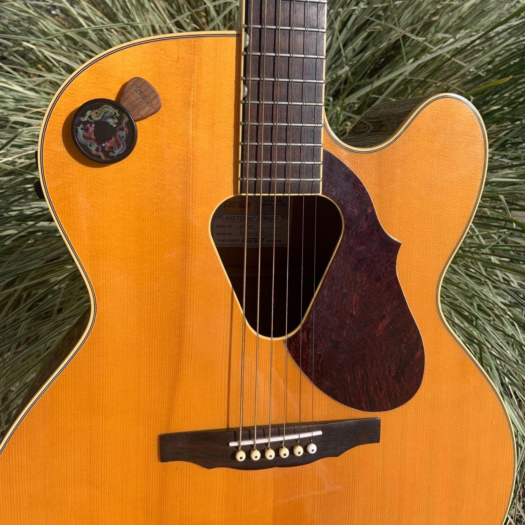 Custom inlaid with Mother of Pearl with a Lucky Dragon Trio Embossing, our patent-pending pick puck is the ultimate guitar pick holder. Stick anywhere that is most convenient for you! See photos below for application ideas!