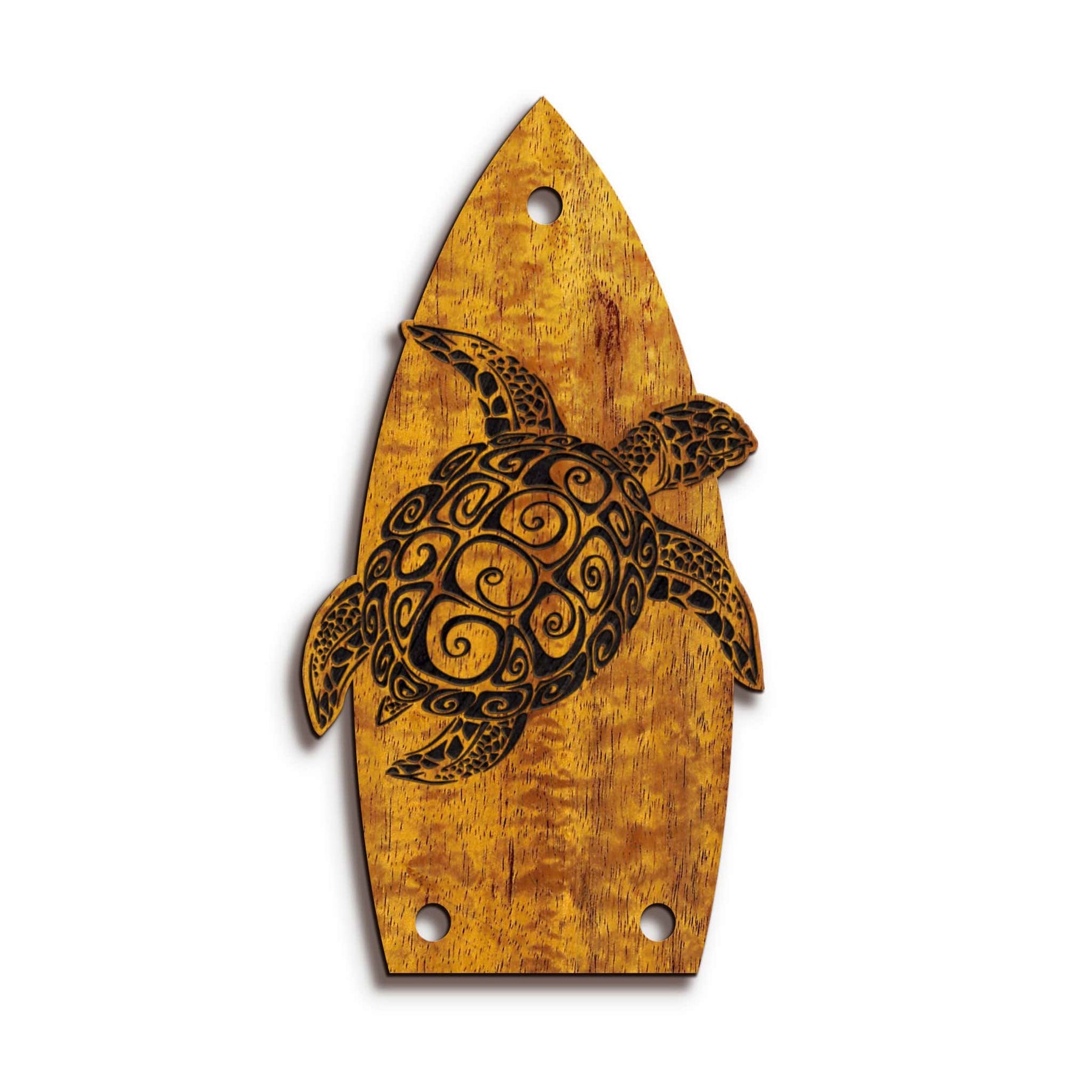 This custom Truss Rod Cover features an engraving of the highly revered Sea Turtle, or "Honu" as referred to in Hawaii. The legendary creature is a symbol of wisdom and good luck in Hawaii.