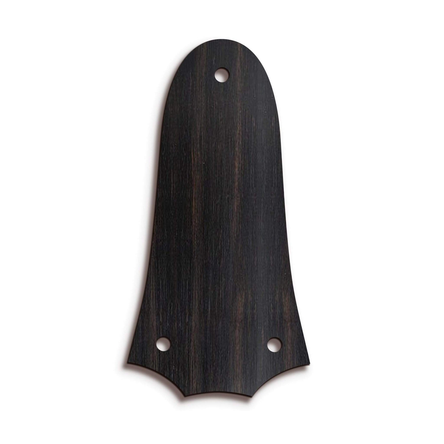 All of our Truss Rod Covers consist of a finished top layer (Black Ebony, Rosewood, or AAA Curly Koa) with two base layers of Rosewood.  We use this layered construction on a base of Rosewood for enhanced durability.